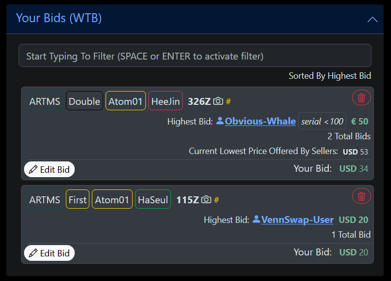 Thus sellers in this system are largely the passive party. You don't even really need to offer/price your items if you want, you can just sit back and see what the demand is like then you initiate at your leisure. This should also work out better for consumers because people who may not have thought about selling may reconsider if they see what the demand is like for stuff they were originally planning on holding.